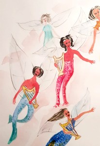 Die zunächst niedlich aussehenden Sirenen flogen Fränzi um den Kopf herum. Auf ihren Harfen musizierend redeten sie mit salbungsvollen Stimmen auf sie ein.