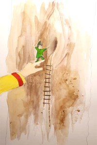 Fränzi lief zu dem Baum. Es war in der Tat nur ein kurzes Stück. Sie entdeckte eine Strickleiter, die vom Erdboden zu dem Loch führte. Bei der Öffnung musste es sich folglich um den Eingang zu Adams Behausung handeln. Hier wohnst du also«, sagte Fränzi staunend. Sie führte ihre Hand an die Schulter. Adam kletterte auf ihre Finger. Vorsichtig schob Fränzi die Hand zum Eingang, so dass Adam in seine Baumhöhle steigen konnte. Fränzi verlor ihn aus den Augen. »Darf ich mal gucken, wie es bei dir aussieht?«, fragte sie.«, fragte sie. »Gerne«, hörte sie Adam rufen.