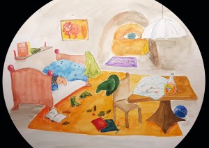 Fränzi hielt sich ein Auge zu. Mit dem anderen spähte sie durch das Loch. Die Baumhöhle wirkte geräumiger, als man gedacht hätte. An einer Seite stand ein Bett, auf der anderen ein Tisch mit einem Stuhl. Die Schranktür stand offen und einige Anziehsachen waren auf dem Boden verteilt. Besonders gut aufgeräumt war die Höhle nicht. Trotzdem wirkte es darin sehr gemütlich. Überall lagen Bausteine, Autos, Malstifte und andere Dinge herum, die allerdings so winzig waren, das Fränzi sie teilweise nur noch erahnen konnte.