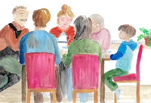 Die Erwachsenen unterhielten sich über das Wetter, ein Thema, für das Jakob sich nicht besonders interessierte. Er hatte sich schon neben Oma gesetzt und wartet förmlich darauf, dass die anderen für eine Weile verschwanden. Schließlich standen sie auf und gingen hinaus.