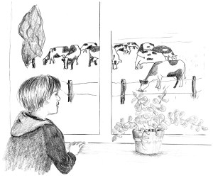 Am anderen Morgen saß er mit Oma in der Küche. „Wenn du aus dem Fenster siehst, wie viele Kühe kannst du sehen?“, fragte er schmunzelnd.